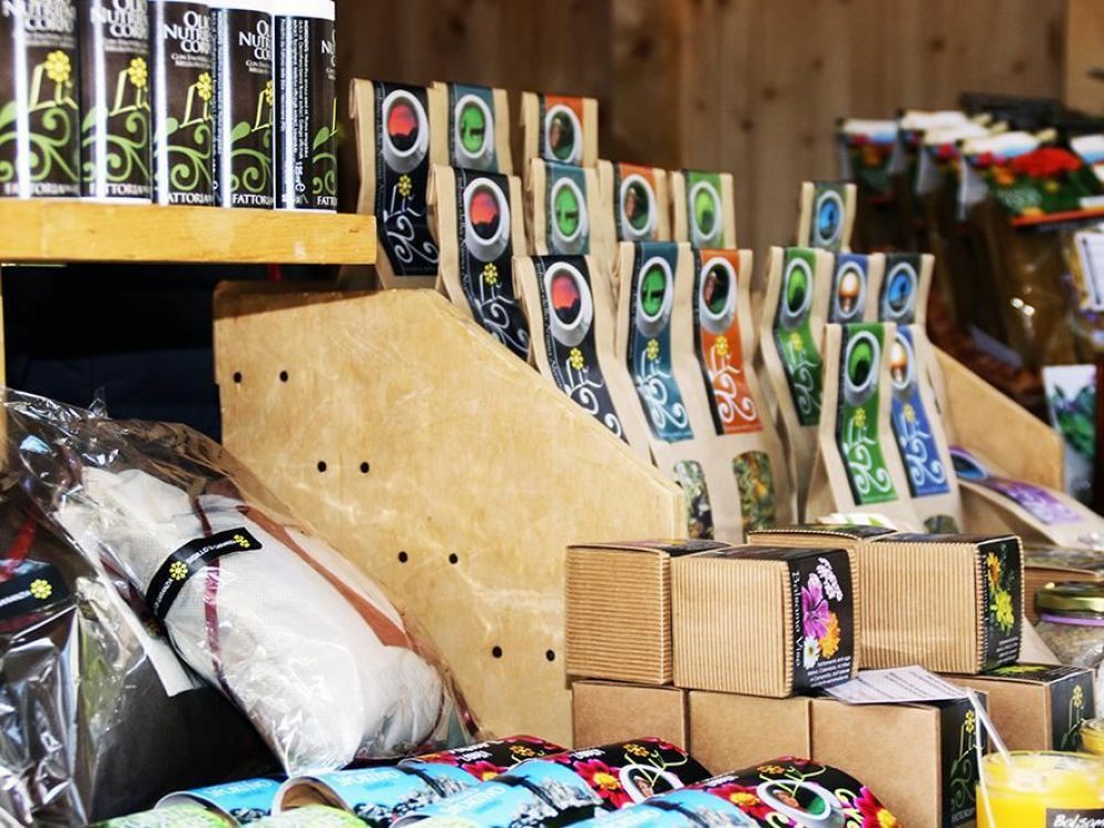 Il mercatino di prodotti locali in piazza a Colfosco offre una vasta scelta di specialità e artigianato tipico.